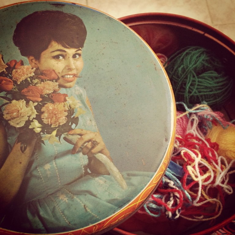 | A caixa das bolachas espanholas aka caixa vintage para guardar restos de lã |