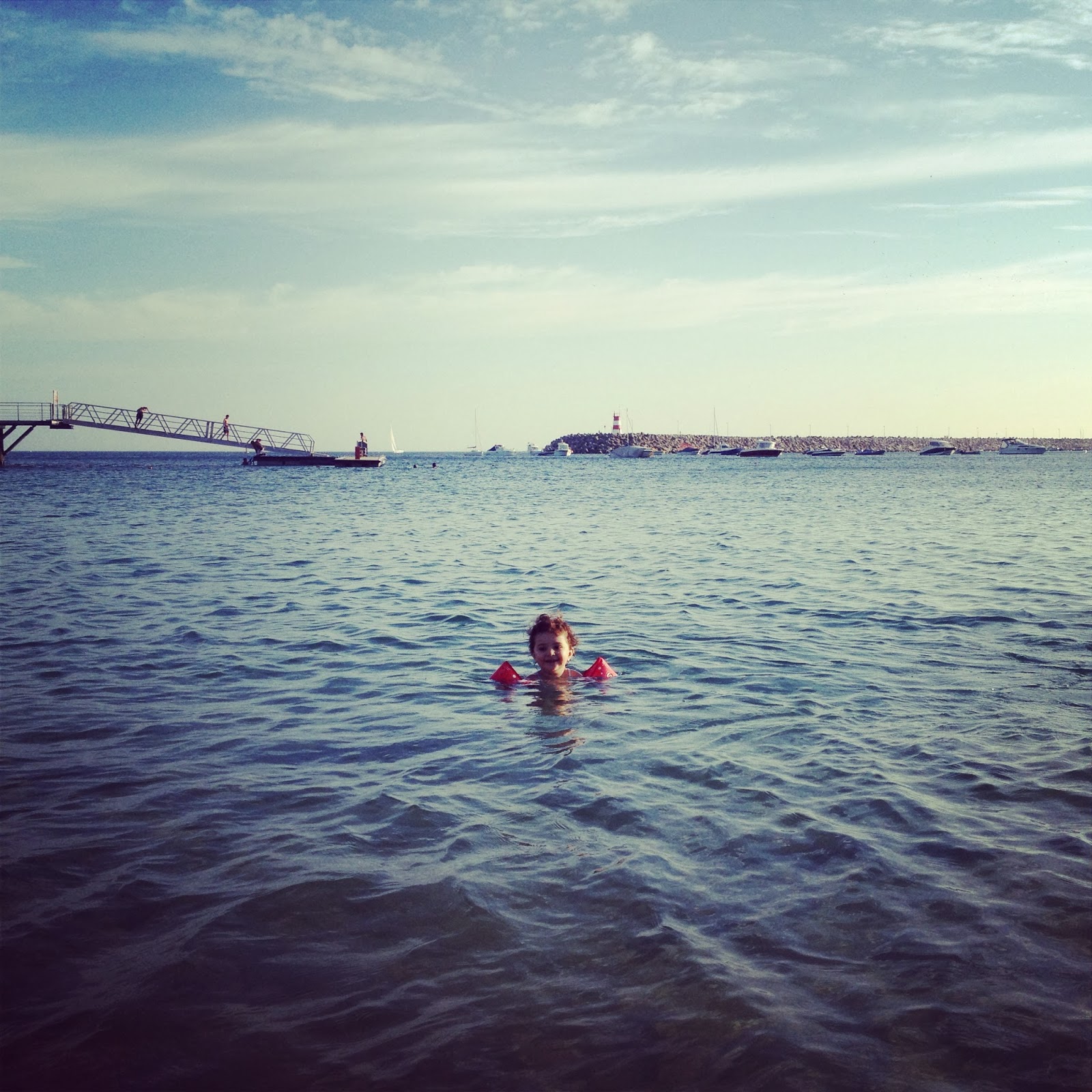Não sei por que é que, de todos os miliários da vida de uma criança (primeiro dente aos seis meses, primeiros passos aos 13, primeiro dia de escola), não se inclui a primeira vez em que uma criança nada sozinha no mar com braçadeiras. Não falo do dia em que a criança aprende a nadar efectivamente, sem quaisquer ajudas. É óbvio, e acho que ninguém nega, que esse é um dia memorável (quem não se lembra ainda do dia em que aprendeu a nadar?). Falo do dia em que uma criança consegue nadar sozinha com braçadeiras em pleno mar. É um passo enorme, um acto de coragem inegável, especialmente se estamos a falar de uma criança que ainda não fez 3 anos e ainda no início do Verão morria de medo de ir a banhos e agora já consegue largar a mão da mãe ou do pai e avançar dez metros para "mar alto". Nunca ninguém fala disso, nunca ninguém se lembra (eu não me lembro do dia em que nadei sozinha pela primeira vez com bóia ou braçadeira...), nunca ninguém dá a importância devida a esse marco, só porque é com braçadeiras e não é realmente nadar. Pff para vocês que só aprenderam a nadar aos 8 anos.